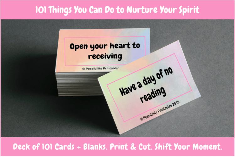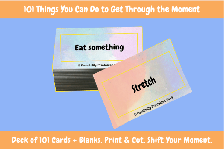 Set of 101 cards with same items as the 101 Things posters and trifold brochures. These light-hearted and simple suggestions are based on brain science, psychology and common sense. For personal use, as gifts, and for therapy rooms, waiting areas and group workshop spaces. Great for use as prompts in wellness and self-care education settings. Useful for structuring group discussions and creating personalized wellness plans. Each set comes with blanks for you or clients to fill in their own strategies.