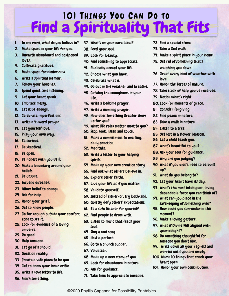 All of the 101 Things You Can Do to Find a Spirituality That Fits digital download items are here: